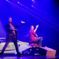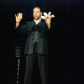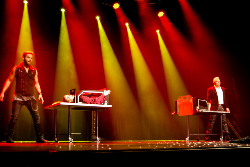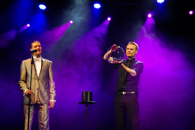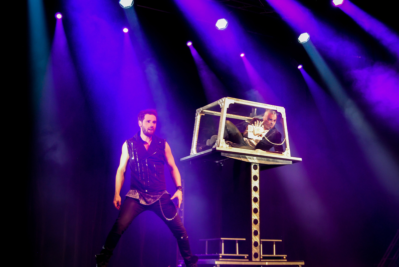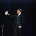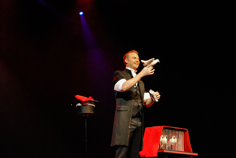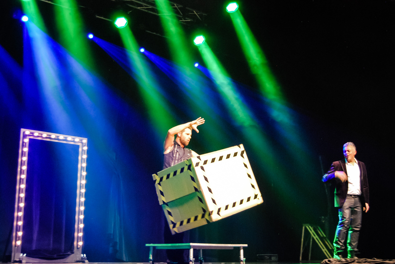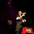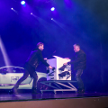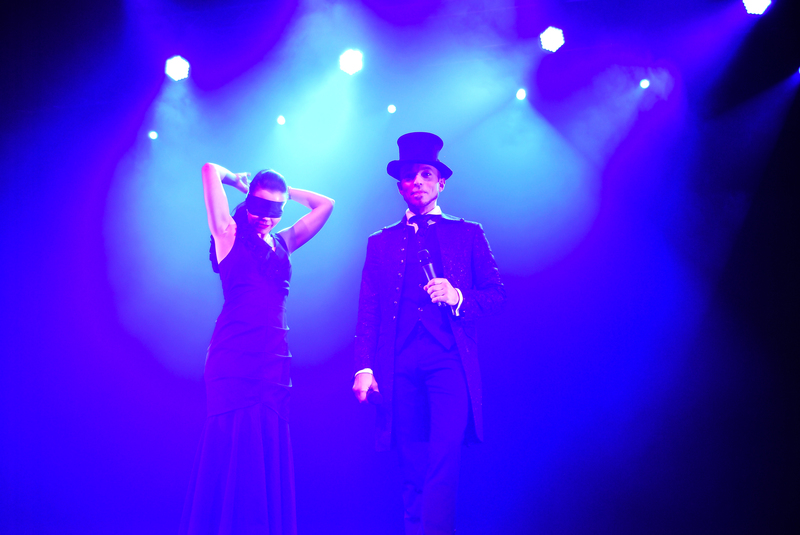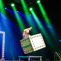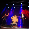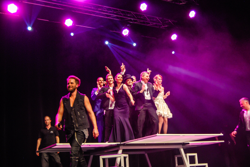 Die zweite Hälfte eröffnen Marc & Alex mit einem waghalsigen „Table of death“. Zusammen mit zwei ihrer Stagehands haben sie es geschafft diese große Illusion fulminant umzusetzen und zu inszenieren. Gänsehaut und viel Nervenkitzel beiben dabei nicht aus. Danach begrüßt Timo Marc die Zuschauer zur zweiten Hälft mit seinem Flo „Helmut“ der waghalsig vom Sprungbrett in einen Wassertank springt. Gekonnt unterhaltsam stürmt Gaston später auf die Bühne und bringt den verloren geglaubten Floh zu Timo Marc zurück. Timothy Trust und Diamond zeigen anschließend ihre Telepathie Darbietung von der ich wieder begeistert bin. Durch die enorme Geschwindigkeit, gepaart mit witzigen Sprüchen, wird die Nummer zu einem unterhaltsamen Act und erscheint den Zuschauern nicht nur als eine reine Vorführung eines Talents. Zyculus führte, neben seiner Tauben Darbietung, eine sehr schöne Seifenblasen Routine vor, die mit Live Gesang von Stefan Hein gelungen ergänzt wurde. Eine Nummer auf die ich mich speziell gefreut habe, war die Manipulationsnummer von Sebastian Nicolas. Mit perfekt gabgestimmter Musik und ganz klaren Bewegungen und Griffen schafft er es, Manipulation wie echte Zauberei aussehen zu lassen. Immer wieder unglaublich diese Präzision zu sehen.
