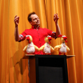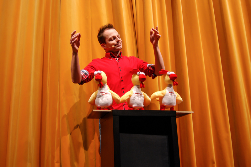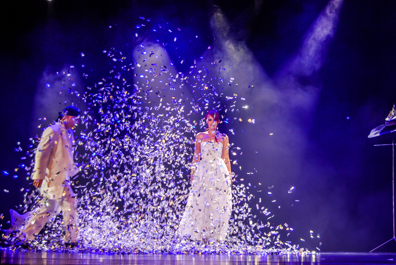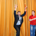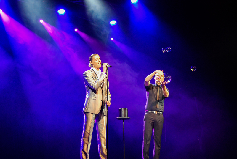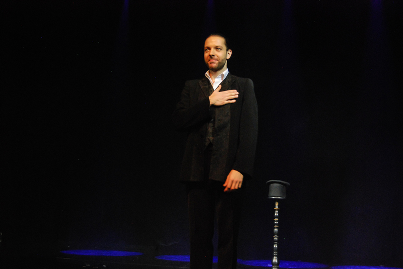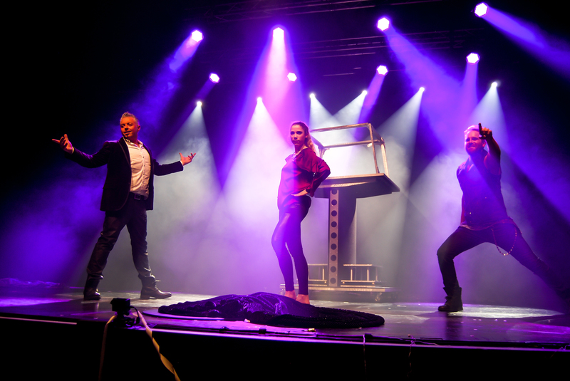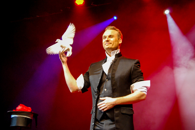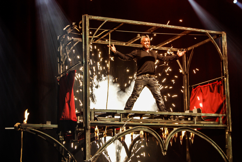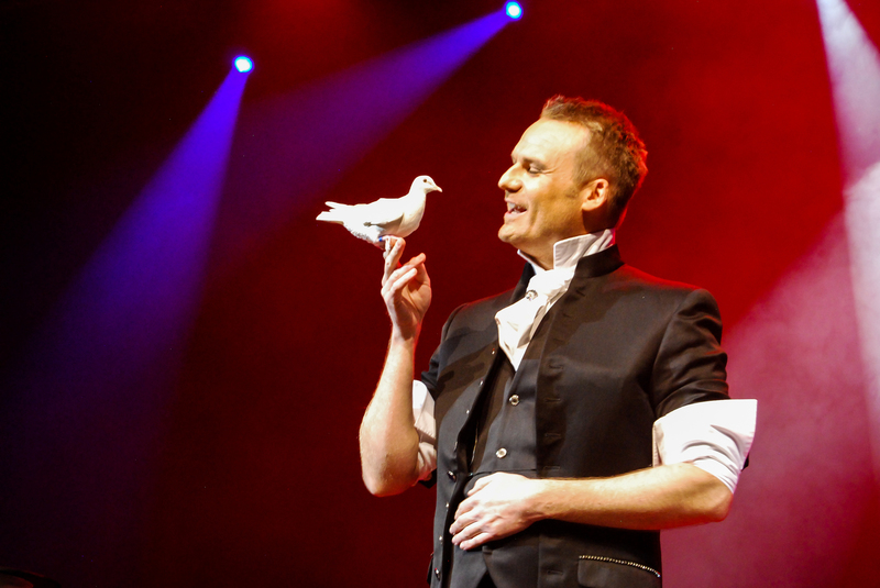 Die zweite Hälfte eröffnen Marc & Alex mit einem waghalsigen „Table of death“. Zusammen mit zwei ihrer Stagehands haben sie es geschafft diese große Illusion fulminant umzusetzen und zu inszenieren. Gänsehaut und viel Nervenkitzel beiben dabei nicht aus. Danach begrüßt Timo Marc die Zuschauer zur zweiten Hälft mit seinem Flo „Helmut“ der waghalsig vom Sprungbrett in einen Wassertank springt. Gekonnt unterhaltsam stürmt Gaston später auf die Bühne und bringt den verloren geglaubten Floh zu Timo Marc zurück. Timothy Trust und Diamond zeigen anschließend ihre Telepathie Darbietung von der ich wieder begeistert bin. Durch die enorme Geschwindigkeit, gepaart mit witzigen Sprüchen, wird die Nummer zu einem unterhaltsamen Act und erscheint den Zuschauern nicht nur als eine reine Vorführung eines Talents. Zyculus führte, neben seiner Tauben Darbietung, eine sehr schöne Seifenblasen Routine vor, die mit Live Gesang von Stefan Hein gelungen ergänzt wurde. Eine Nummer auf die ich mich speziell gefreut habe, war die Manipulationsnummer von Sebastian Nicolas. Mit perfekt gabgestimmter Musik und ganz klaren Bewegungen und Griffen schafft er es, Manipulation wie echte Zauberei aussehen zu lassen. Immer wieder unglaublich diese Präzision zu sehen.
